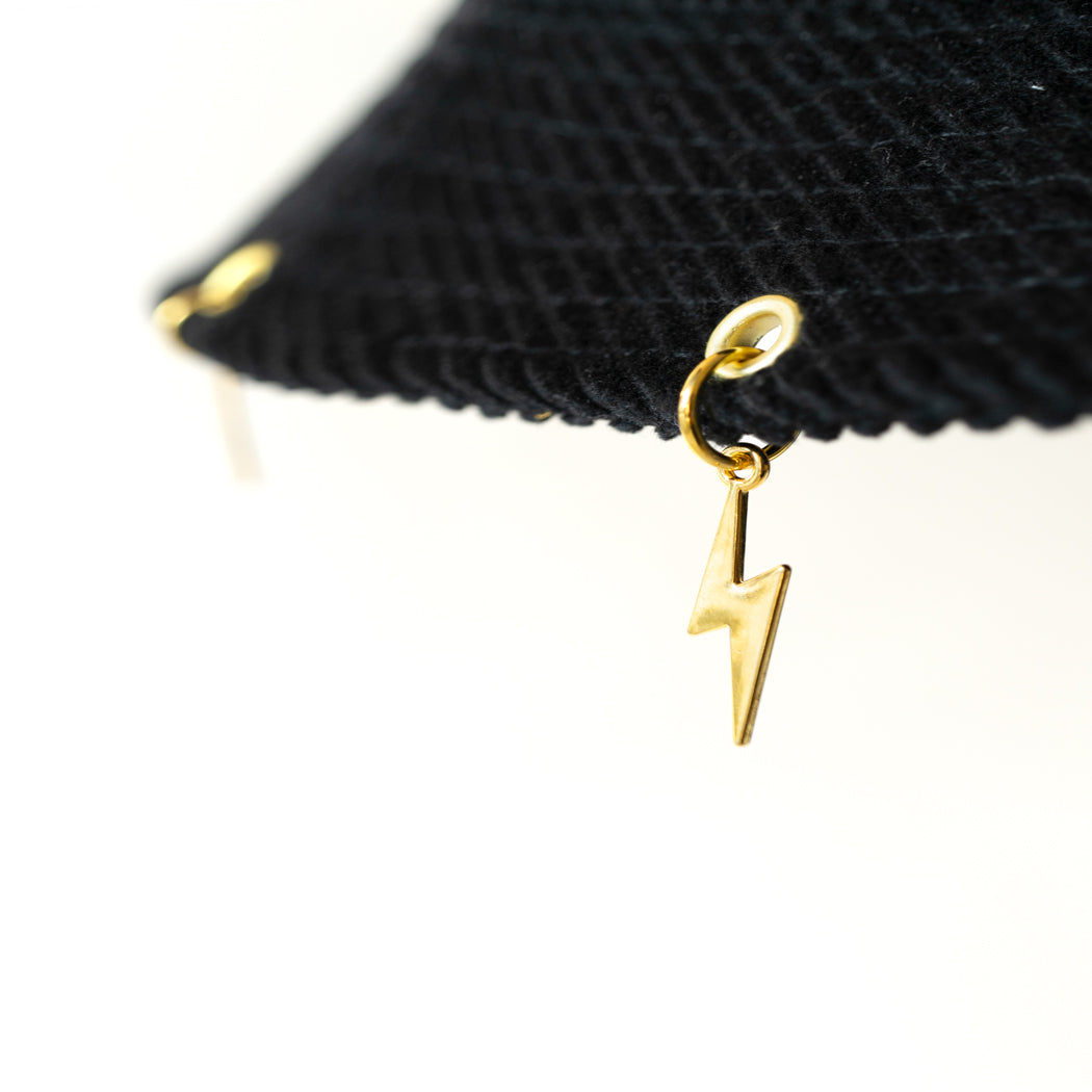 Gold metal eyelets & lightning charms